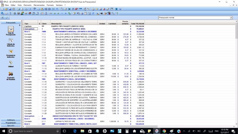 Sistema operativo Windows10 a 64 bits Memoria ram 8 GB. Procesador Intel i7 a 2.5 GHz. OPUS 18