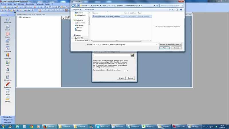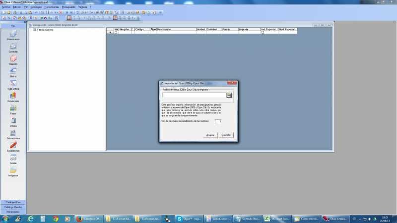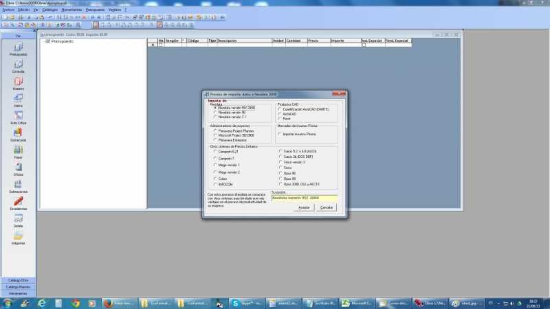 4.- En la seccion de otros sistemas de precios unitarios seleccionas la opcion de opus 2000, ole y AE10, ahi precionas aceptar y te saldra la imagen siguiente