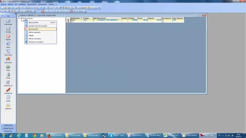 2.- De preferencia borras todas las partidas por default que crea la obra
