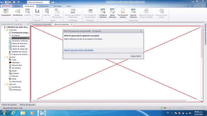 que actualmente estoy trabajando me manda ese error en la pestaña de calculo de indirectos.
