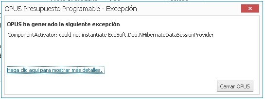 Buen día, tengo un problema al querer abrir ECOSTOS desde Opus 2014, me aparece este error y me cierra el programa. ojala puedan ayudarme.