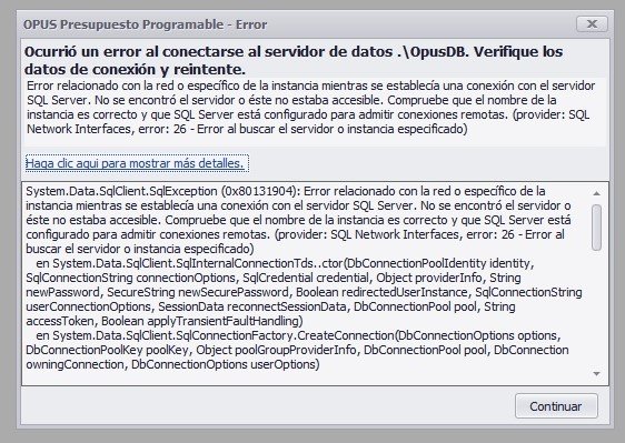 Hola Alfonso. Es probable que la instancia OPUSDB se haya desconectado.