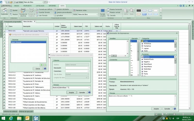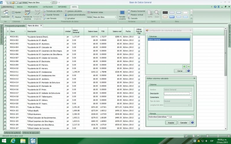 Saludos a toda la comunidad de Franquicia Ingenieria de Costos, reorganizando mi base de datos, referente a la mano de obra, me encontré que para mayor percepción de la información, deseo agregar una columna en la cual refleje el salario semanal (esto es multiplicar el salario base x 7 días), intente agregar una columna INDICE 1, pero no funciono el agregar la formula, aguien conoce dicho procedimiento para efectuar dicha actividad.