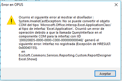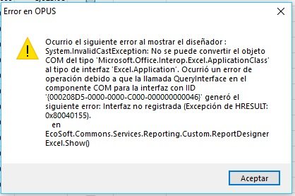 Hola, trabajo con el Opus 2017 y estaba trabajando satisfactoriamente, pero me ha surgido un error al querer entrar al editor del FASAR y desde entonces no puedo utilizar esta herramienta, mas adelante vi en el foro que otro usuario tenia un error similar pero con el editor de reportes, lo verifique y también tengo ese problema.