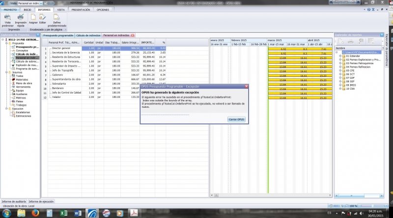 SI SABEN COMO ME DESHAGO DE ESTE ERROR QUE ME CAUSA AL MANDAR A IMPRESION PREVIA DEL PROGRAMA DEL PERSONAL TECNICO, YA QUE SE CIERRA EL OPUS 2015, DE LO CONTRARIO, NO ENVIA A LA IMPRESION DE PANTALLA Y SE CIERRA.