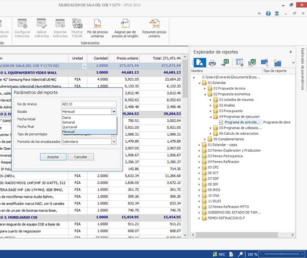 Cuando seleccionas el reporte de programa de obra usando el reporteador de EXCEL, al dar clic en vista previa o envío directo a Excel, te aparecerá un cuadro de diálogo, ahí cambia el periodo según la imagen que te adjunto y listo. Cualquier detalle quedo a tus ordenes.