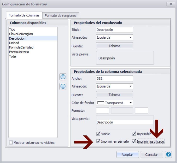 Y al ir a imprimir en vista previa, obtendrás la descripción completa.