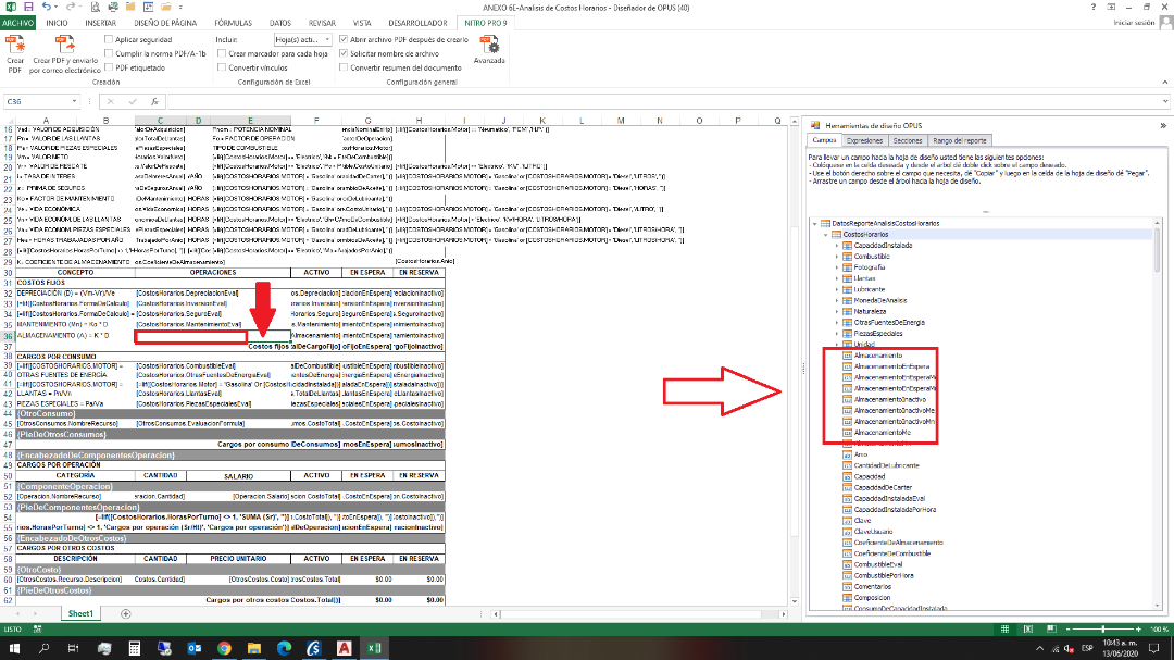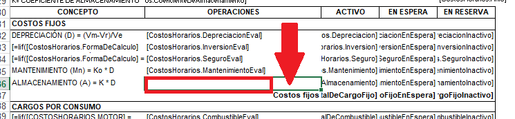 me di cuenta que a mi reporte de costo horario le faltaba señalar en el apartado de los costos fijos el costo por almacenamiento pero en el listado de formulas no se como configurar para que me devuelva la formula de donde se obtiene dicho valor he observado que los demas costos están en el apartado "costo horario" y tiene una terminacion Eval pero justamente el del almacenamiento no lo encuentro alguien podria ayudarme a configurarlo para que en el reporte me arroje la operacion que debe ser el valor del coeficiente de almacenamiento por la depresiacion, saludos