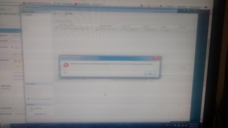 Buenas tardes Ing. De nuevo dándote lata mira ya realice el procedimiento para recuperar mis obras con los archivos mdf y ldf , pero hay una que al realizar el procedimiento me sale esto ( An error ocurred when attaching the database(s) click the hyperlink in the message colum for details) y no se como se podía corregir, ojala me ayudes porque es la obra que necesito y me urge. Cosa irónica no crees.