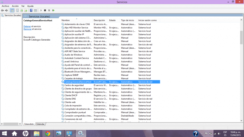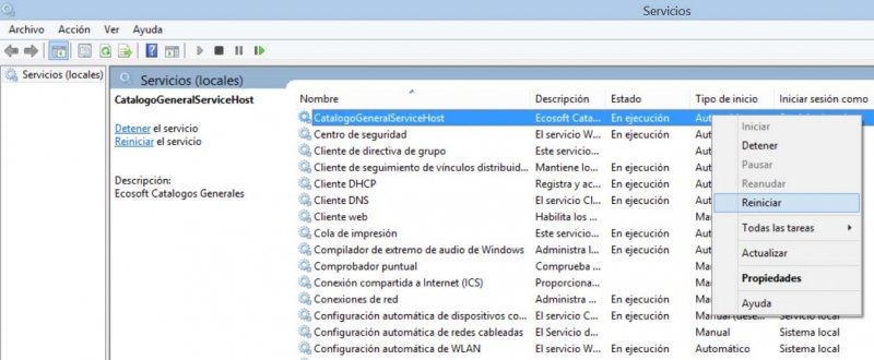 Ahora busca Catálogo General y verifica que no esté apagado, si es así con botón derecho del Mouse da clic en Iniciar o reiniciar