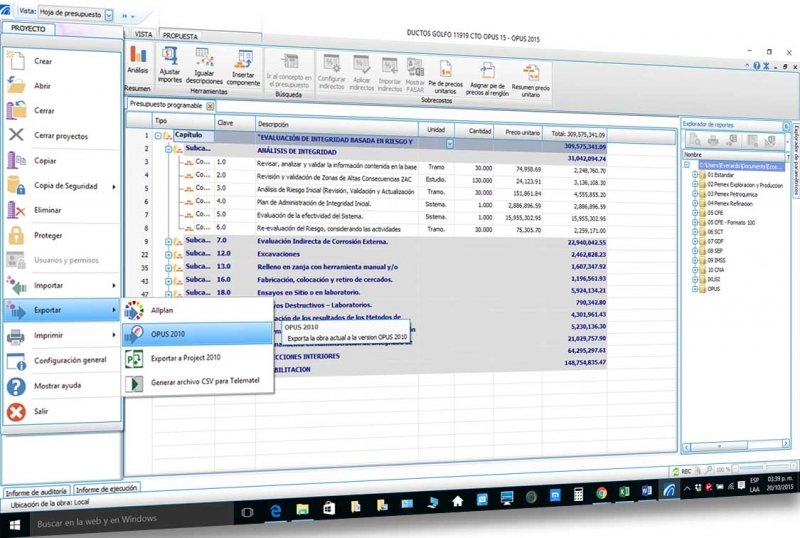 Para ello tienes que tener abierta la obra que deseas exportar a OPUS 2010 para luego ir al Menú Proyecto