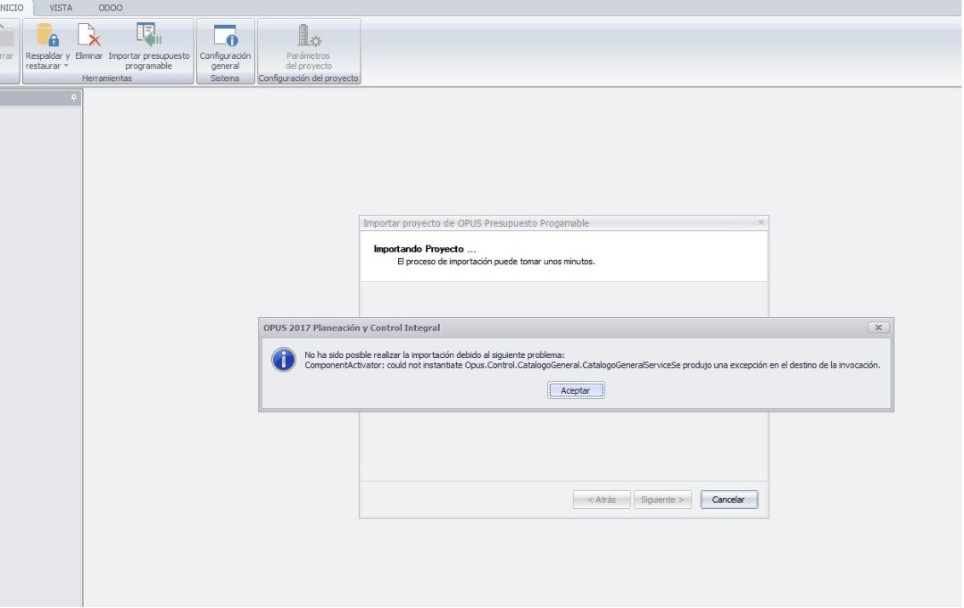 Buen día, como menciona el titulo tengo un detalle al querer Importar proyectos en el Modulo 2, al querer importarlos se genera un error(anexo la imagen del error) el cual no me permite continuar, esto sucede con todas las obras disponibles.