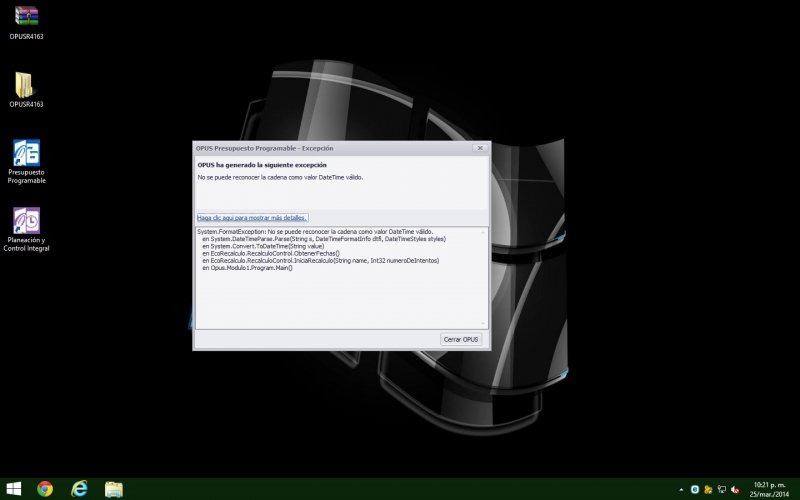 Saludos a toda la comunidad de franquicia Ingenieria de Costos, en estos días, deje de utilizar el opus 2014 (2 meses) ya que estuve utilizando el Opus 2010, pero ahora que salio la revisión del 24 de Marzo de 2014, me dispuse a descargar e instalarla, asi que todo resulto bien, pero al intentar abrir el modulo 1, me apareció el siguiente error, a que se deberá, si alguien me puedo asesorar a resolverlo. muchas gracias