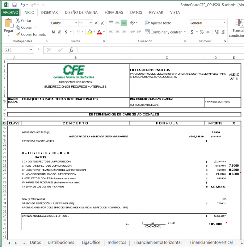 Ahora ¿cómo se calcula? Yo tengo una hoja donde se desglosa pero les diré como lo calcula OPUS.