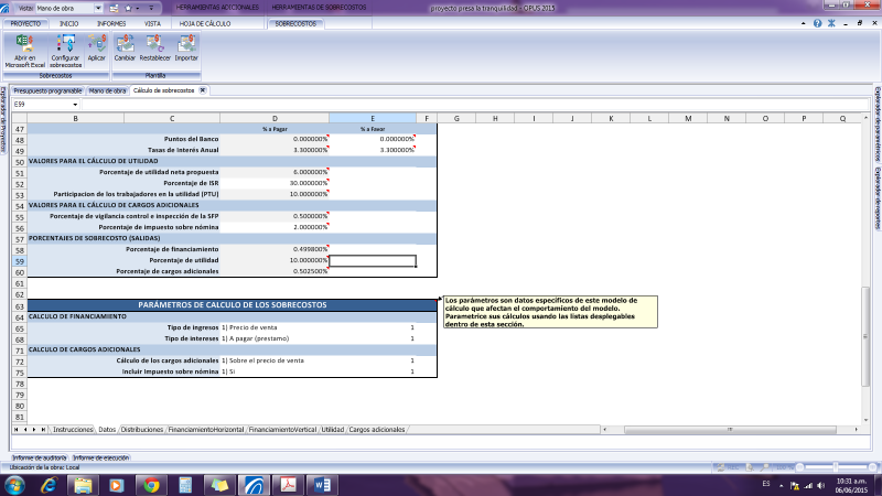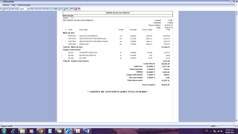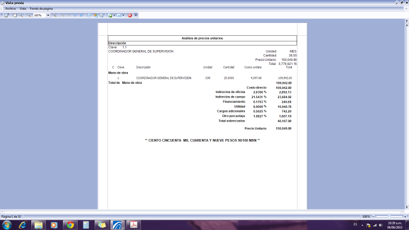 Yo necesito que el porcentaje adicional por impuesto local aparezca en la matriz. Tengo un día y medio deteniéndome por esto. Si escribo el porcentaje en el píe de precios unitarios me lo duplica. En otra propuesta que realice si se reflejo y ahora no se que hice mal.