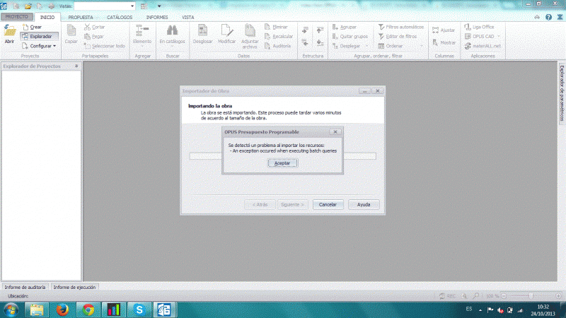 Tengo problemas al realizar importación de mi base versión Opus 2010 al Opus 2014, salen mensajes an exception occured when executing batch queries que podría hacer para solucionar este inconveniente.