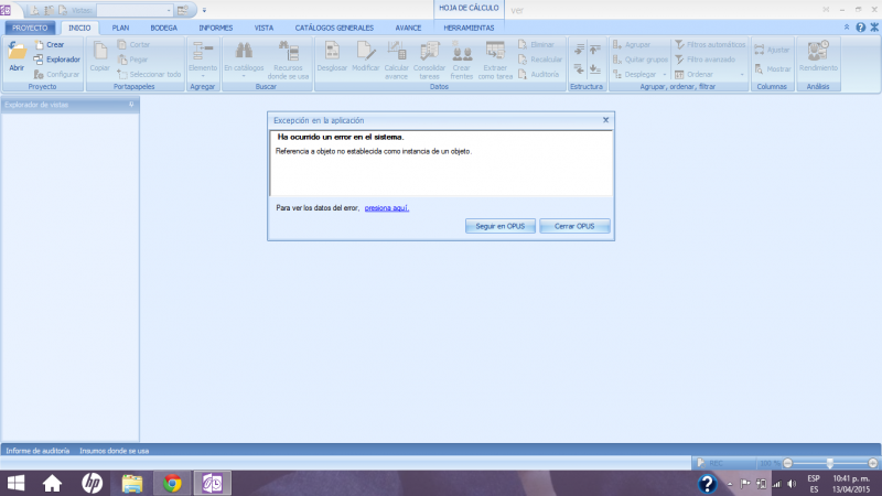 Hola Verónica: Intentas regresar a OPUS 2014? no lo recomiendo.