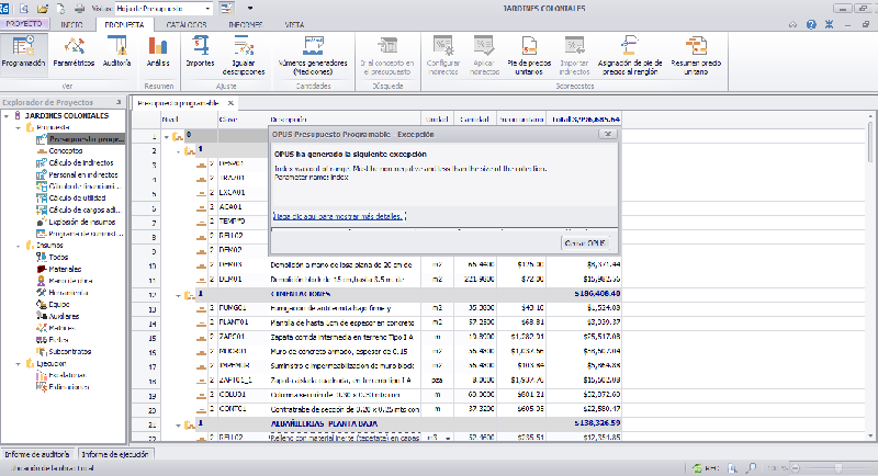 Buenos dias, mande un mensaje con el siguiente problema, no se si llego, lo vuelvo a mandar. En el programa de obra al tratar de generarlo me sale el siguiente error: