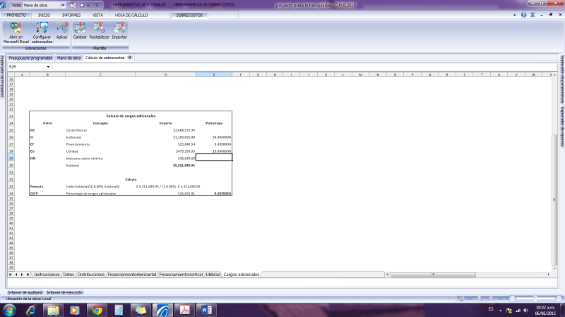 EN DONDE SE ENCUENTRA EL DESGLOSE DETALLADO, DONDE OPUS CALCULA EL IMPORTE Y EL PORCENTAJE OBTENIDO PARA APLICAR EN LAS TARJETAS DE PRECIOS UNITARIOS, REFERENTE AL ISN.